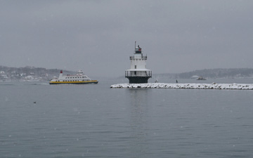 Full Moon over Peaks Island from Spring Point Light, South Portland, Maine